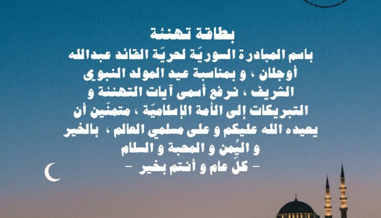 الصور بطاقة تهنئة -بمناسبة عيد المولد الشرف:تهانينا القلبية وأطيب الأمنيات لكم ولعائلاتكم… By freedomocalansyria Last updated سبتمبر 14, 2024 258 Share 258 Share