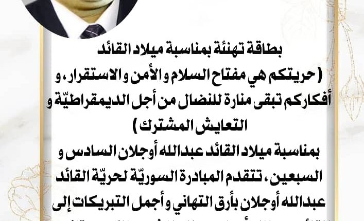الصور بطاقة تهنئة :با يوم ميلاد القائد 4 نيسان By freedomocalansyria Last updated أبريل 4, 2025 290 Share 290 Share