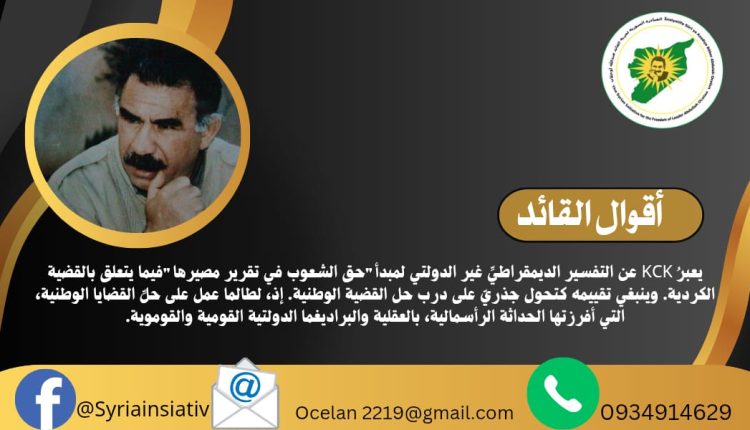 المبادرة السوريّة لحريّة القائد عبدالله أوجلان ، أنّ النضال من أجل إنهاء العنف و…