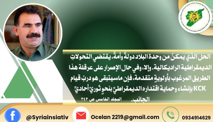 المبادرة السوريّة لحريّة القائد عبدالله أوجلان ، أنّ النضال من أجل إنهاء العنف و…
