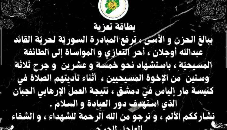 “المبادرة السورية لحرية القائد عبد الله أوجلان” تشارك في صلاة لراحة أرواح شهداء تفجير كنيسة مار إلياس بدمشق