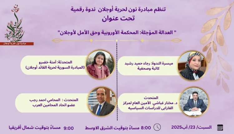 في هذا السياق، نظمت مبادرة نون لحرية أوجلان، مساء يوم السبت 23 أغسطس/آب، ندوة عبر الفضاء الإلكتروني بعنوان “العدالة المؤجلة: المحكمة الأوروبية وحق الأمل لأوجلان”، تناولت أبعاد قضية القائد آبو من منظور حقوقي وسياسي وفكري، ومناقشة حول استمرار السلطات التركية في عدم تطبيق حق الأمل له بما يتماشى مع كافة القوانين ذات الصلة.