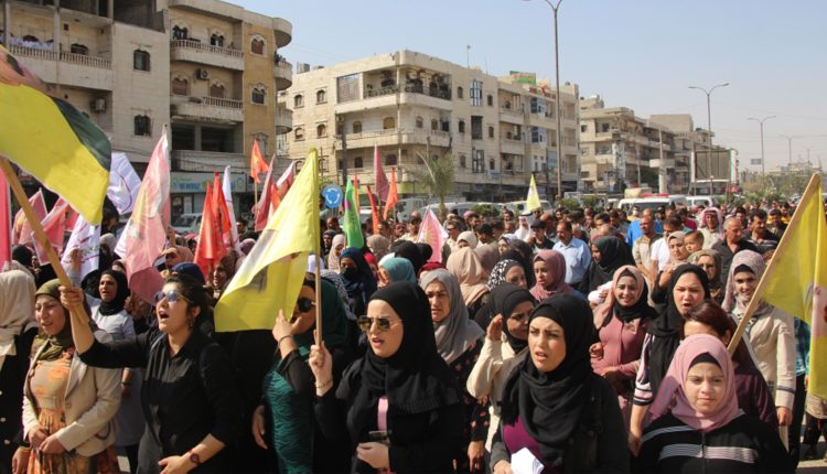 المئات في منبج يتظاهرون ضد العزلة على القائد أوجلان تحت شعار “سنحطم جدران إمرالي”