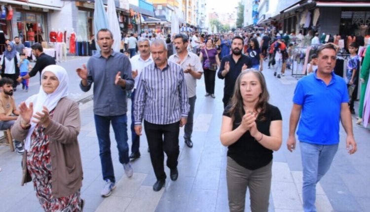 وحاصرت الشرطة المجموعة التي وصلت الى شارع أميك. وأدان الحشد الذي ضم كل من الرئيسة المشتركة العامة لحزب الاقاليم الديمقراطي (DBP)، صالحة أيدنيز، ورئيسة الكتلة النيابية لحزب الشعوب الديمقراطي (HDP)، ميرال دانيش باشتاش، والمتحدث باسم مجلس الشبيبة لحزب الشعوب الديمقراطي، ديرسم داغ، وبرلماني حزب الشعوب الديمقراطي، إردال أيدمير، وإمام تاشجر، ونائبة الرئاسة المشتركة المسؤولة عن التنظيم، أوزلم غوندوز، المؤتمر برفع أصابعهم والتصفيق، تحت حصار الشرطة.
