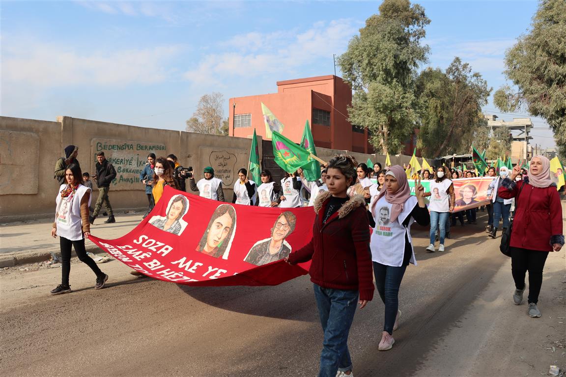 نظم اتحاد المرأة الشابة في مقاطعة الحسكة، مظاهرة منددة بمجزرة باريس الثانية، والعزلة المشددة المفروضة على القائد أوجلان، شاركت فيها عضوات المؤسسات المدنية في الإدارة الذاتية الديمقراطية لإقليم الجزيرة.