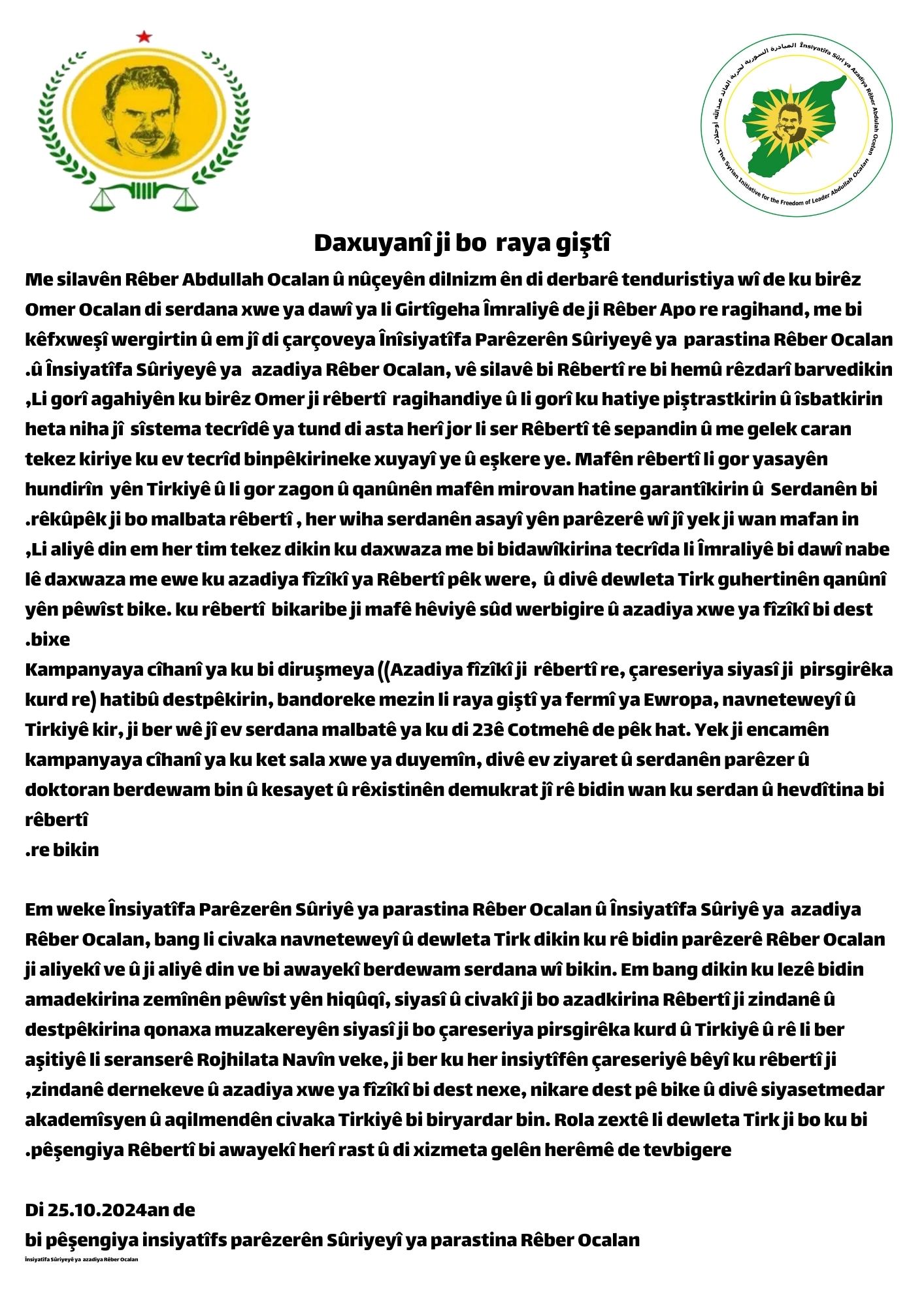 Uncategorized Daxuyanî ji bo raya giştî Bi rêya freedomocalansyria Nûkirina dawî Oct 25, 2024 0 101 Bi par ve bike بيان كورديDownload 0 101 Bi par ve bike