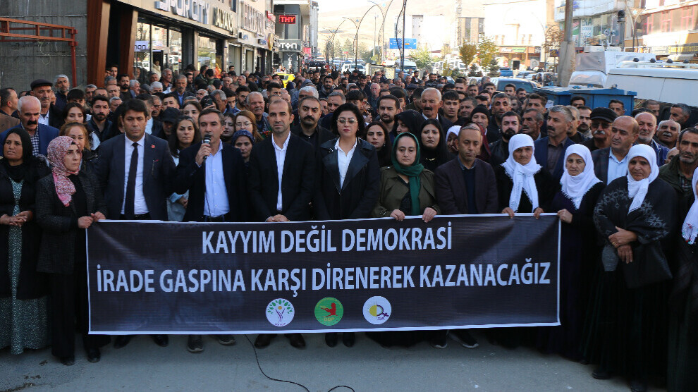 Nerazîbûnên li hemberî desteserkirina şaredariyên Mêrdîn, Êlih û Xelfetiyê yên di bin rêveberiya Partiya Wekhevî û Demokrasiyê ya Gelan (DEM Partî) de berdewam dikin. Li navçeya Gever a Colemêrgê bi tevlîbûna Hevserokê Giştî yê DBP’ê Keskîn Bayindir çalakî û meşeke girseyî hatin lidarxistin. Gelek rêxistinên sivîl û nûnerên partiyên siyasî tev li çalakiyê bûn.