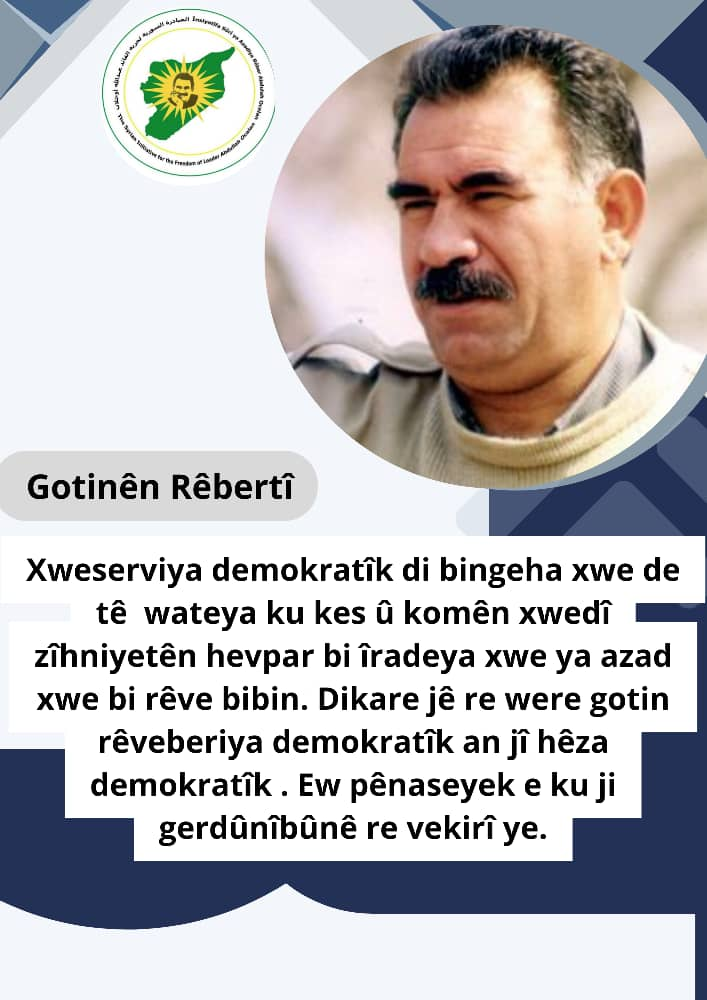 GOTIN Gotinên Rêbertî: Bi rêya freedomocalansyria Nûkirina dawî Dec 1, 2024 0 79 Bi par ve bike R.Apo 0 79 Bi par ve bike