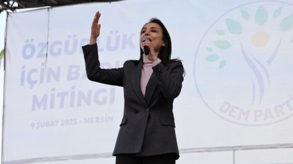 Hevseroka Giştî ya DEM Partiyê Tulay Hatîmogûllari di mitînga “Ji bo aştiyê azadî” ya li Mêrsînê de axivî û anî ziman ji bo qala aştiyê were divê tecrîd were rakirin û gavên şênber bên avêtin û got: “Em ê di vê pêvajoyê de ji xwe û ji birêz Ocalan bin.”