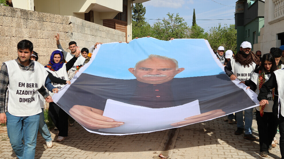 Girse dema gihîşt gundê Amarayê, posterê mezin ê Abdullah Ocalan ku roja 27ê Sibatê li Girtîgeha Îmraliyê hatibû kişandin rakir û bi berzkirina dirûşmeyên, “Rojbûna te pîroz be ey Serok Apo”, “Bijî Serok Apo”, “Dinyayeke bê Ocalan em ê bi ser wê de hilweşînin” , “Şehîd namirin”, “Ciwan fedayiyên Rêber Apo ne” ketin hewşa mala Abdullah Ocalan ku lê dayik bûye. Li malê Mehmet Ocalan û Omer Ocalan û xizmên Rêber Apo, girseyê pêşwazî kirin.