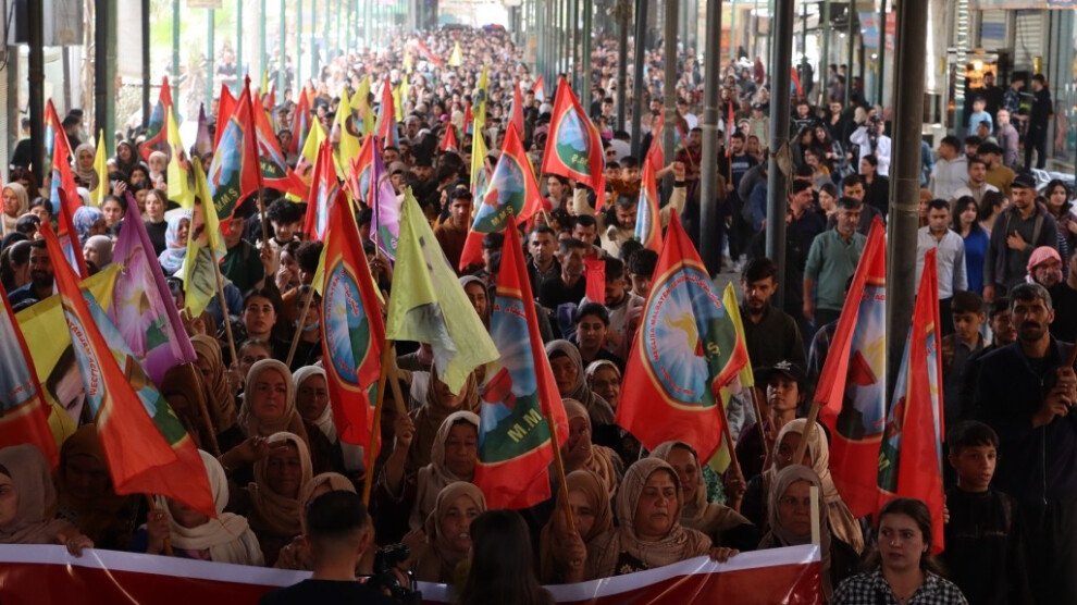Meş li qada Jina Azad destpê kir. Di meşa girseyî de wêneyên Rêber Apo û wêneyên şehîdên şoreşê hatin hildan. Girseya gel bênavber dirûşmên “Bêjî Serok Apo”,”Bê Serok jiyan nabe” û “Berxwedan jiyane” berzkirin.