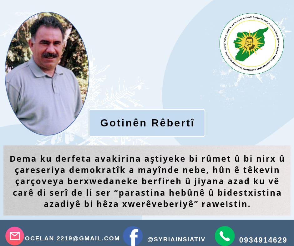 GOTIN Gotinên Rêbertî Bi rêya freedomocalansyria Nûkirina dawî May 22, 2025 0 66 Bi par ve bike 0 66 Bi par ve bike