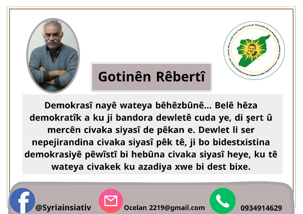 GOTIN Gotinên Rêbertî Bi rêya freedomocalansyria Nûkirina dawî May 26, 2025 0 63 Bi par ve bike 0 63 Bi par ve bike