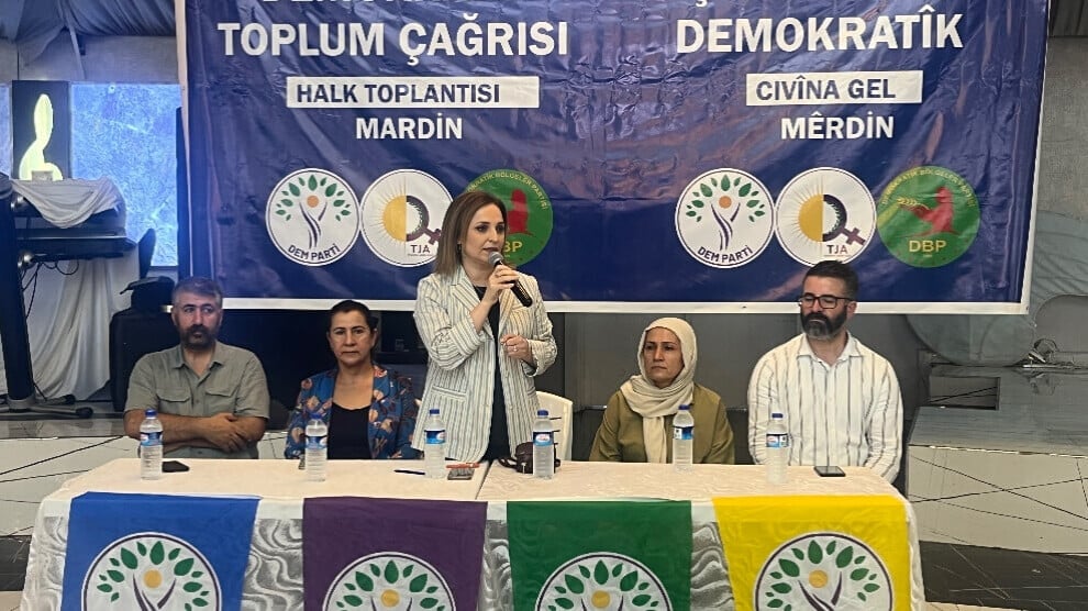 Hevdîtin, bi deqeyeke rêzgirtinê dest pê kir. Piştre jî Berdevka DEM Partiyê Ayşegul Dogan axivî û banga Rêber Apo ya 27’ê Sibatê bi bîr xist û got: “Pêvajoyeke dîrokî ye. Ji salê 90’î heta niha bi milyonan kes mexdûr bûn, me gelek kes winda kirin. Lê dîsa jî me li ber xwe da. Me jî xwest mîna hemû gelan bi nasname, ziman û çanda xwe bijîn. Heke ev daxwazên me hatibûna qebûlkirin dê me ewqas êş nekişanda. Em li ser xaka xwe bûn penaber.”