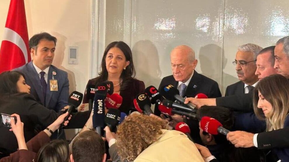 Endamên Şandeya Îmraliyê ya Partiya Wekhevî û Demokrasiyê ya Gelan (DEM Partî) Pervîn Buldan, Mîthat Sancar û Faîk Ozgur Erol li Meclisê bi Serokê Giştî yê MHP’ê Devlet Bahçelî re hevdîtin kir. Şande, ji hêla Bahçelî û MHP’iyan ve li ber derî hate pêşwazîkirin. Piştî wêne û dîmenan, hevdîtin li odeya Meclisê ya Bahçelî ji çapemeniyê re girtî domiya.