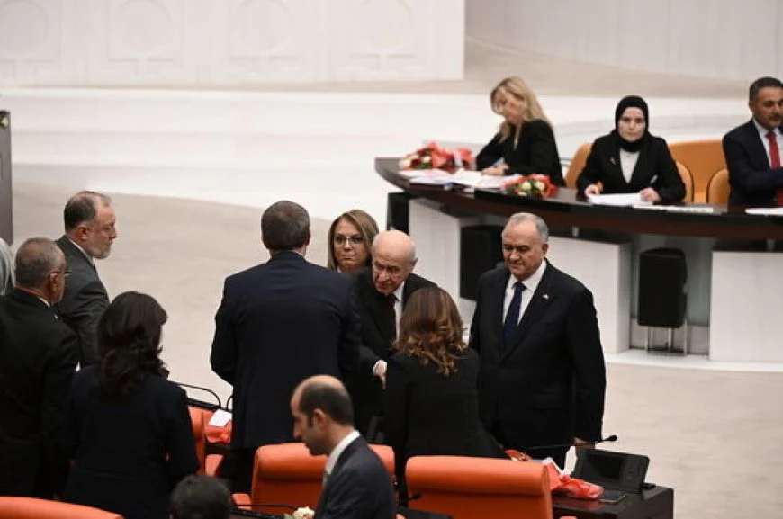 KOMÎSYON HAT AVAKIRIN Piştî merasîma çek şewitandinê, zext li ser dewleta Tirk hatin zêdekirin ku gav bavêje. 5’ê Tebaxê (2025) partiyên ku komên wan di Meclisa Tirkiyeyê de hene, Komîsyona Demokrasî, Xwîşk-Biratî û Hevgirtina Netewî, ava kir. Komîsyonê di tevahiya salê de 18 civîn pêk anîn û 134 kesayet û alî guhdar kirin. 24’ê Mijdarê li ser navê komîsyonê parlementerên DEM Partî, MHP û AKP hevdîtin bi Rêber Apo re pêk anîn. 4’ê Kanûnê li ser rojeva hevdîtina bi Rêber Abdullah Oclan re komîsyonê civîna 19’emîn çêkir û naveroka hevdîtinê bi awayekî kurt hat ragihandin. Lê gelek derdoran û partiyan ev yek têrker nedît û xwestin naverok hemû were eşkerekirin.