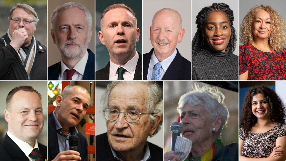 “John Austin, Mike Arnott, President STUC, Baroness Blower of Starch Green, Prof .Bill Bowring, Mickey Brady, MP for Mid Ulster, Julie Christie, Noam Chomsky, Jeremy Corbyn MP, Maggie Cook, UNISON women activist, Prof Mary Davis, Lord Dholakia, Simon Dubbins, UNITE International, Dr Radha D’Souza (writer), Desmond Fernandes, Lindsey German, Convenor STWC, Melanie Gingell, Christopher Gingell, Prof Dr. Michael Gunter, Rahila Gupta, author, journalist, Chris Hazzard Sinn Fein MP, Nick Hildyard, policy advisor, Dafydd Iwan, Former President Plaid Cymru, George Katsiaficas, Greek-American, James Kelman, novelist, Baroness Helena Kennedy KC, Jean Lambert, former MEP, Dr Les Levidow, Open University, Gawain Little, GFTU General Secretary, Elfyn Llwyd, John McDonnell MP, Mike Mansfield KC, David Morgan, journalist, Conor Murphy, Sinn Fein MLA, Dr Thomas Jeffrey Miley, Dr. Jessica Ayesha Northey, Kate Osamor MP, Margaret Owen OBE, Ali Gul Ozbek, Former Councillor and Mayor of Haringey. Gareth Peirce, Dr Felix Padel, anthropologist, Maxine Peake, actor, Dr Thomas Phillips, Liverpool John Moores University, Father Joe Ryan, Dr Thomas Schmidt, ELDH Europe, Bert Schouwenburg, International Trade, Roza Salih, Scottish politician, Tony Simpson, Bertrand Russell Peace, Stephen Smellie, PIK Trade Union, Jonathan Steele, journalist, Chris Stephens SNP MP, Gianni Tognoni, General Secretary, Dr Federico Venturini, Associate, Dr Tom Wakeford, Dr Derek Wall, Julie Ward, former MEP, Frances Webber, former Vice-Chair of, Kariane Westrheim, Chair, EU Turkey Civic Commission (EUTCC), Hywel Williams MP. Kim Johnson MP, Rohash Shexo, Kongra Star Women’s Movement, Suna Alan, Jiyan Kurdish Women’s Assembly, Esra Asiye Guden, co-chair of European Confederation of Immigrants, Rojin Mikuryani, PhD Researcher at University College Cork, Ireland, Sara Kermanian, PhD Researcher at University College Cork, Ireland. Turkan Ozcan &Agit Karatas, Kurdish People’s Democratic Assembly of Britain.”