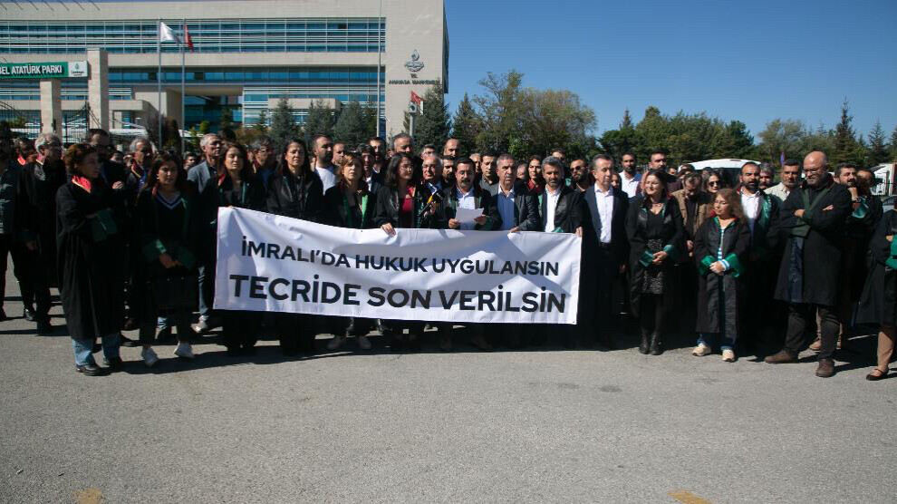 Bi sedan parêzerên ji Kurdistan û Tirkiyeyê hatin Enqereyê, li pêşiya AYM’ê li hev civiyan, tecrîda Îmraliyê protesto kirin û ev bang li AYM’ê kirin: “Berpirsyartiya xwe bi cih bîne.”